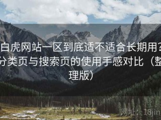在互联网的浩瀚海洋中,选择一个适合长期使用的网站显得尤为重要,特别是对于我们常常依赖网络获取信息和资源的用户而言。今天,我们来深入探讨“白虎网站一区”这一平台,看看它是否真的适合长期使用,并对比其分类页和搜索页的使用手感。通过对这两个关键功能页面的分析,希望能为大家提供一个真实的参考。